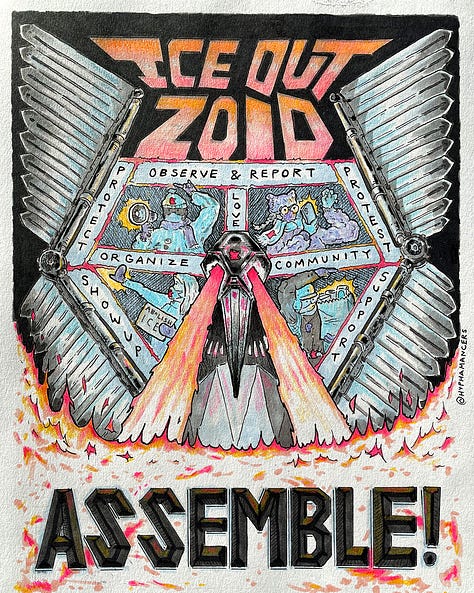 Inspired by such classics as Power Rangers, Captain Planet, and Voltron, the ICE Out Zoid brings the powers of various Minnesota community groups together to resist ICE.